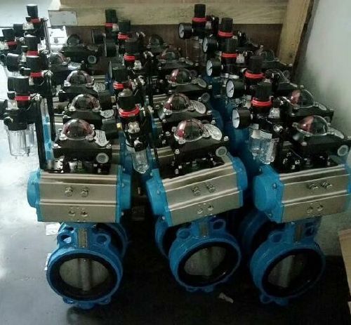 D671X-氣動對夾式軟密封蝶閥,DN32-DN1200,PN0.6-1.6MPa,氣動有單作用(彈簧復位)和雙作用兩種可供選擇,可以配電磁閥(單控、雙控)、限位開關、閥位開關、智能定位器、鎖位閥等附件。