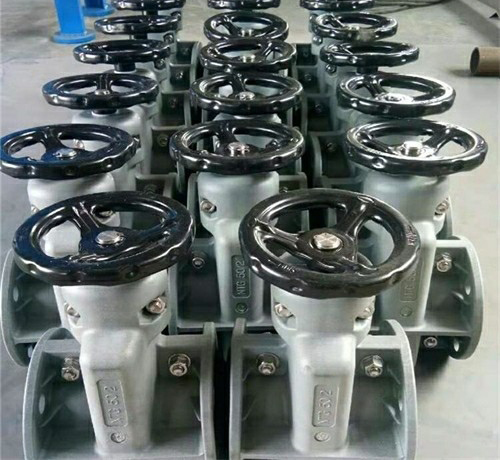 NTGG-NTG塑料管夾閥結構:本閥門由左右閥體,橡膠管套、大小閥桿、上下閘板、導柱等零件組成。工作原理:當順轉手輪時,使大小閥桿同時帶動上下閘板,壓縮管套,進行關閉,反轉即行開啟,這樣,閘板在導柱之間上下往復完成閥門開閉工作。另外,因橡膠管套承力,因此在開關時,操作人員旋轉手輪時只要感到適量抵觸,均己達到開閉極點,切勿盡力或多人輔助,禁用其他工具開閉。GJ41X鑄鐵管夾閥適用化工,石油、發電、堿廠、選礦、水泥、選煤、非金屬等行業,可快速控制管路濃度砂粒狀流量與截止。NTGG-NTG塑料管夾閥