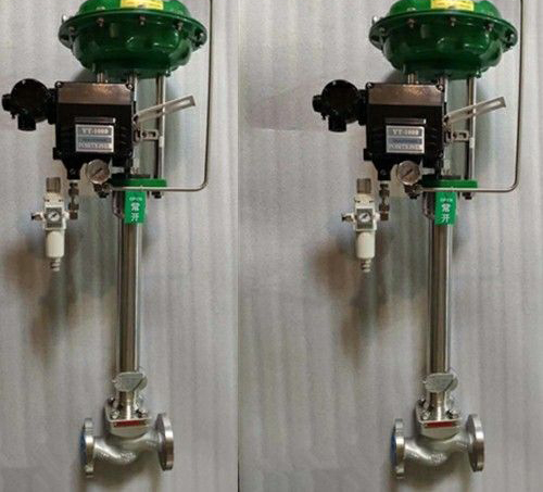 低溫調(diào)節(jié)閥由氣動薄膜執(zhí)行機構(gòu)和耐低溫的單、雙座閥兩部分組成。由調(diào)節(jié)器來的信號壓力輸入氣動薄膜執(zhí)行機構(gòu)的氣室,產(chǎn)生推力,通過連接桿件帶動閥芯,閥芯位置的變化使閥的流通截面積變化,實現(xiàn)對介質(zhì)流量的調(diào)節(jié)。