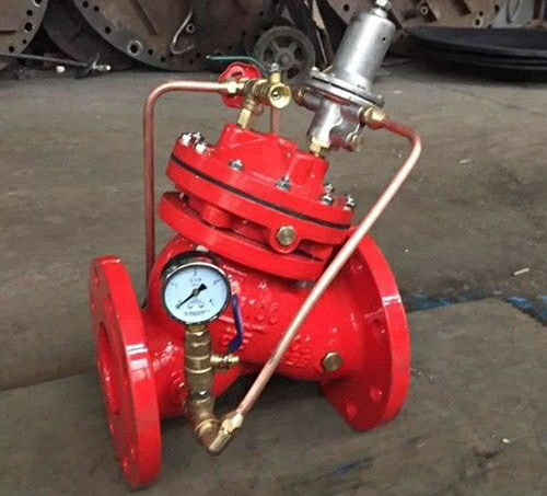 當水泵起動起后,水壓作用于主閥閥盤下面和控制室下腔,此壓力使主閥開啟,控制室上腔的水經過調節閥B緩緩排到出口端,主閥緩緩開啟。設定調節閥的開度可得到合適地主閥開啟速度。
