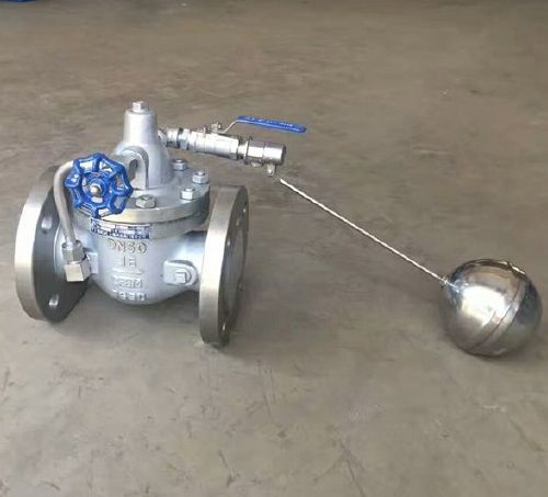 當水塔(池)的水面上升至設定高度時,浮球浮起關閉浮球閥,控制室內水壓升高,推動主閥關閉,供水停止。