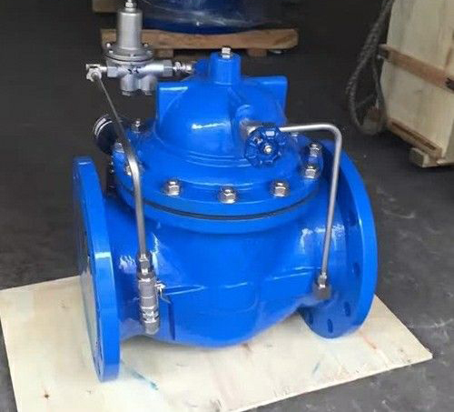 當(dāng)閥門從進(jìn)口端給水時(shí),水通過微型過濾器、針閥、單向閥進(jìn)入主閥控制室,再經(jīng)過球閥排水至下游。因?yàn)獒橀y開度小于球閥開度,即主閥控制室的排水速度大于進(jìn)水速度,因此控制室壓力降低,作用于主閥盤下端的進(jìn)口壓力打開主閥向下游供水。
