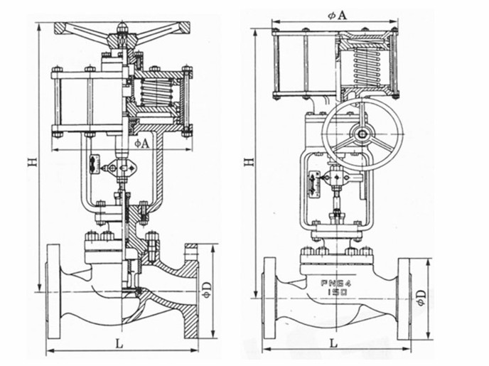 1、切斷閥采用膜片式多彈簧執行機構,與三柱調節機構相連,整體高度降低30%右。您可以減輕約30分量。