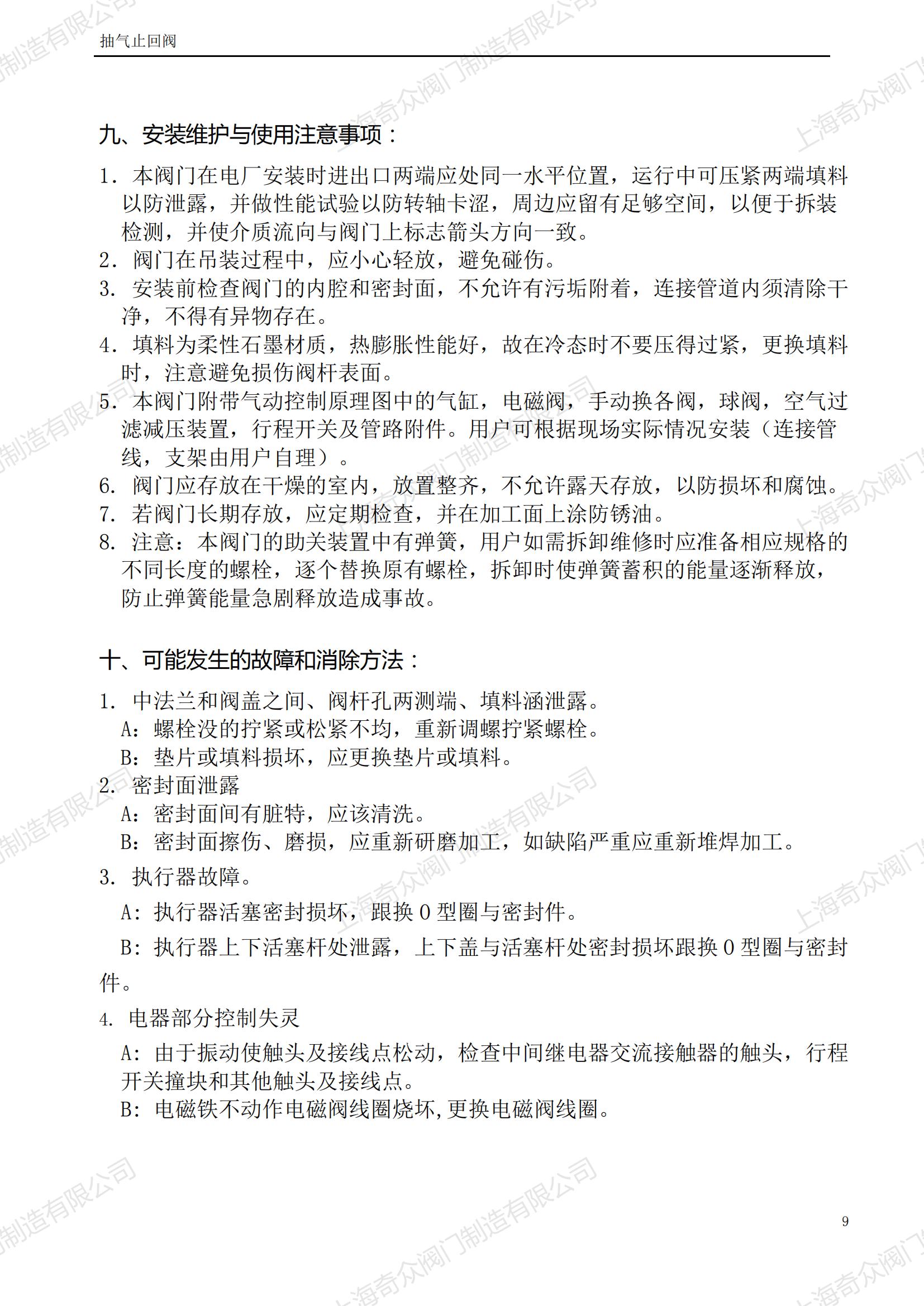 2、當(dāng)介質(zhì)正向流動時,氣缸下腔進(jìn)氣,與重錘共同作用,合閥瓣平衡地處在全開位置。當(dāng)介質(zhì)反向流動時,氣缸活塞下腔迅速泄壓,閥瓣在0.5秒內(nèi)快速關(guān)閉。